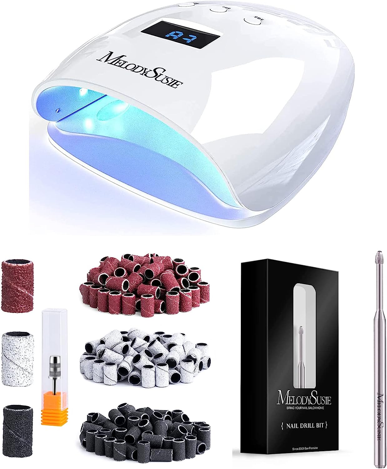 UV LED Nail Lamp with 300Pcs Sanding Bands and Cuticle Clean Nail Drill Bits