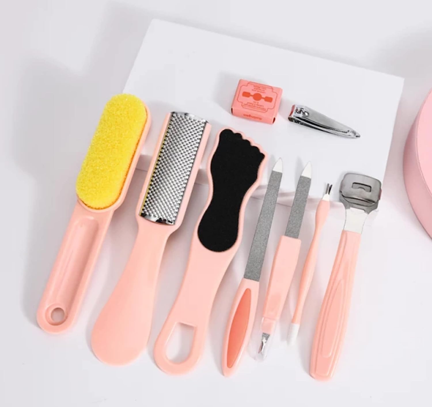 Professional 9 pcs Light Orange Manicure Pedicure Set Nail Care