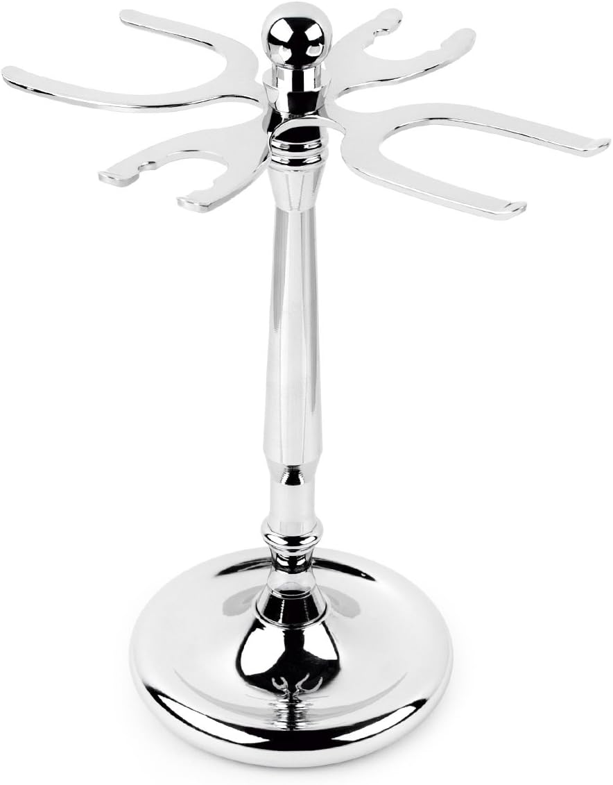 Deluxe 4 Prong Chrome Razor and Brush Stand, Prolong The Life of Your Shaving Brush
