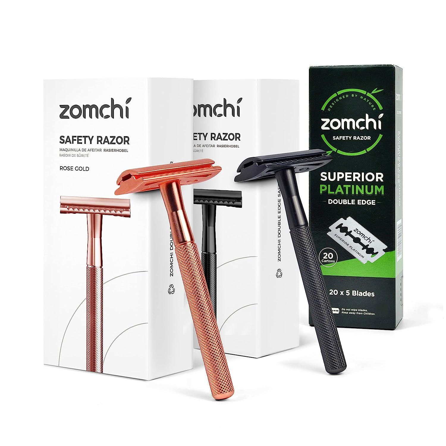 Gold Safety Razor for Women+Black UnisexDouble Edge Safety Razor+100 Counts Safety Razor Blades