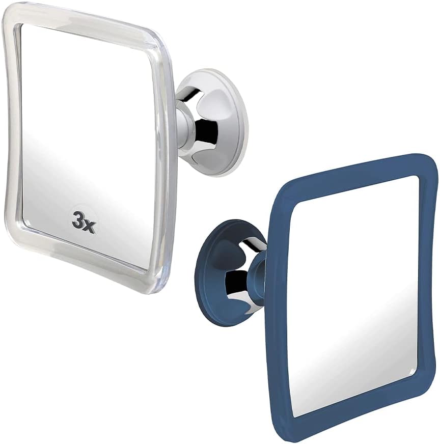 Fogless Shower Mirror with Upgraded Suction-Cup (6.3 x 6.3 Inch) – 1X and 3X Bundle