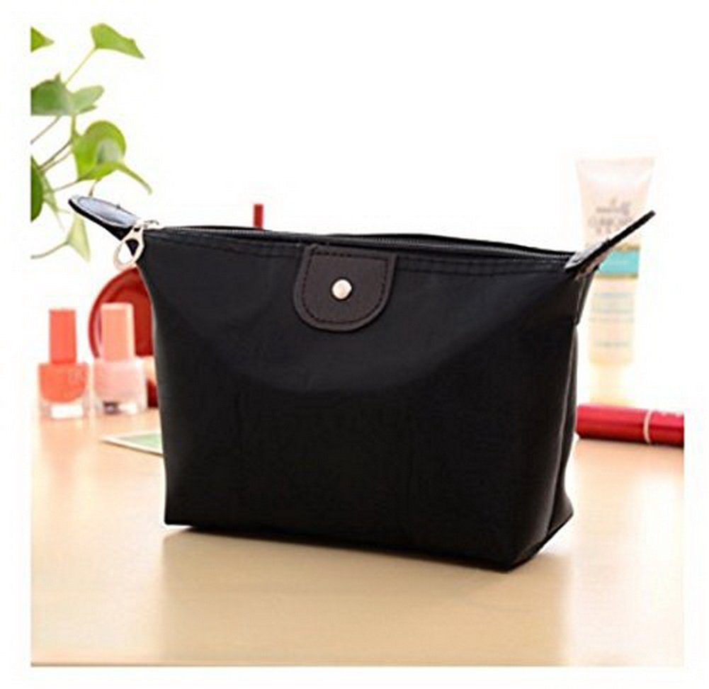 Ladies Waterproof Nylon Zipper Makeup Bag Portable Multifunction Travel Cosmetic Bag(Black)