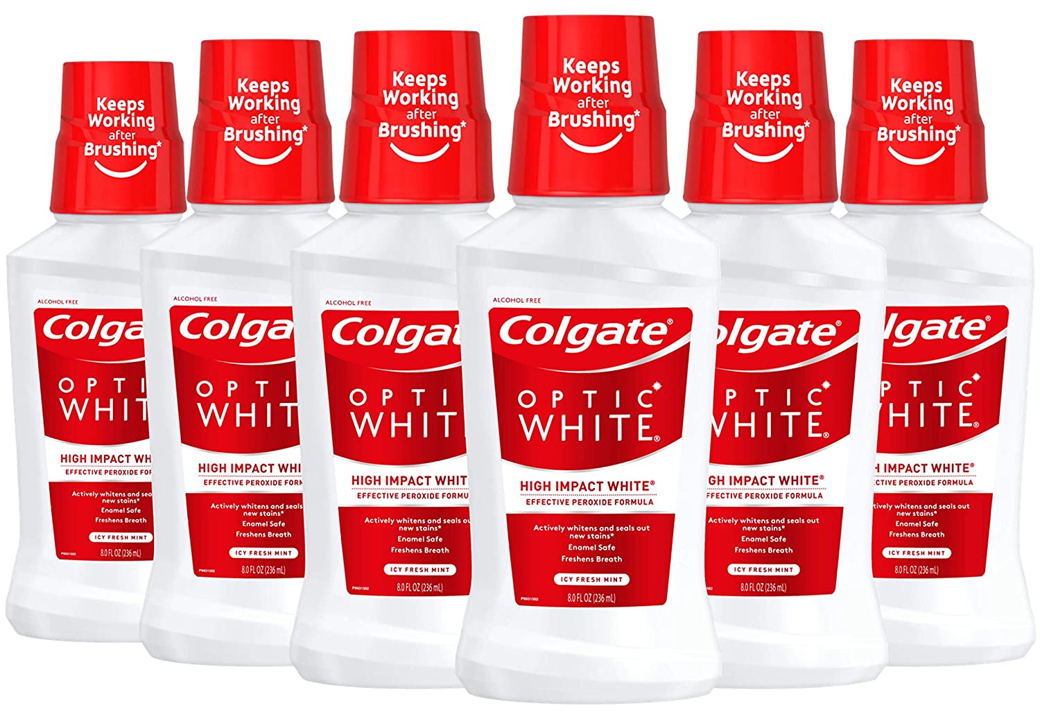 Optic White Whitening Mouthwash, Icy Mint , 8 Fl Oz (Pack of 6)