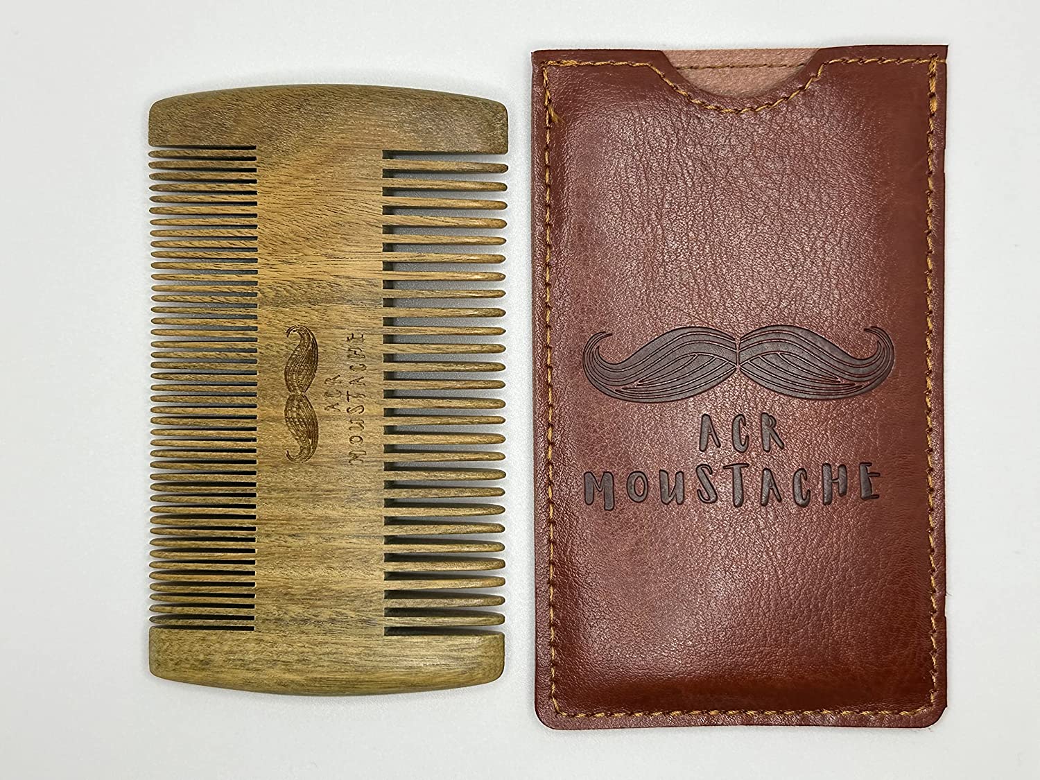 Sandalwood Beard Comb with leather Case for long and short Beards