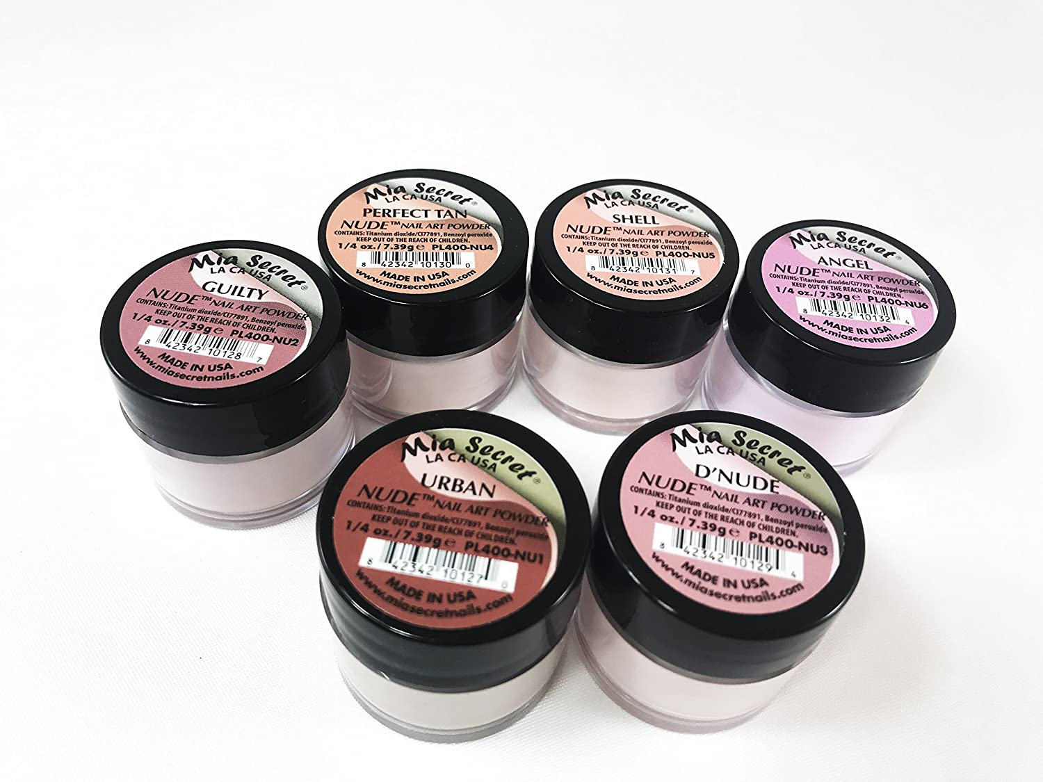 Nude Nail Art Powder Kit 6pcs: Urban, Guilty, D”Nude, Perfect Tan, Angel, Shell