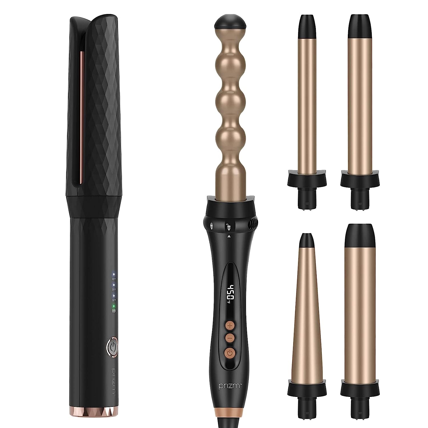 5-in-1 Curling Iron Wand Set, Portable Hand Press Free Curling Iron