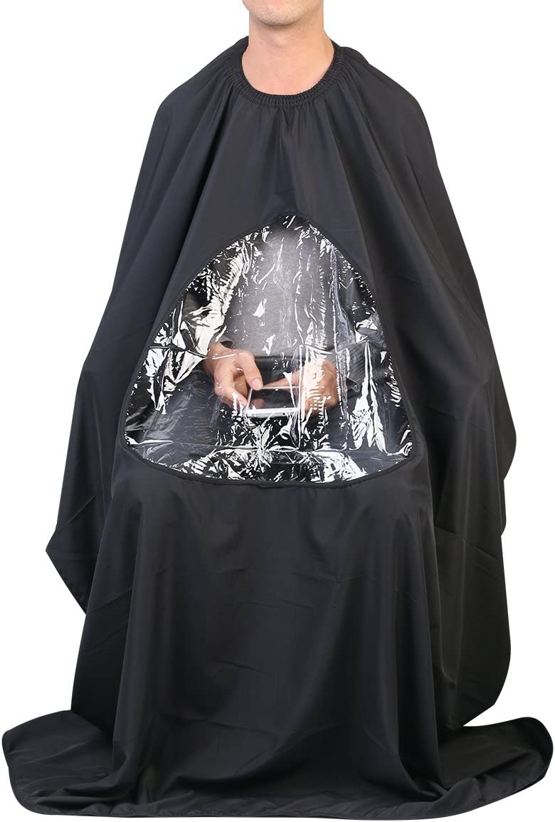 Salon Home Barbers Hairdressing Cape Gown with Viewing Window for Hair Cutting 63 * 57′(Black)