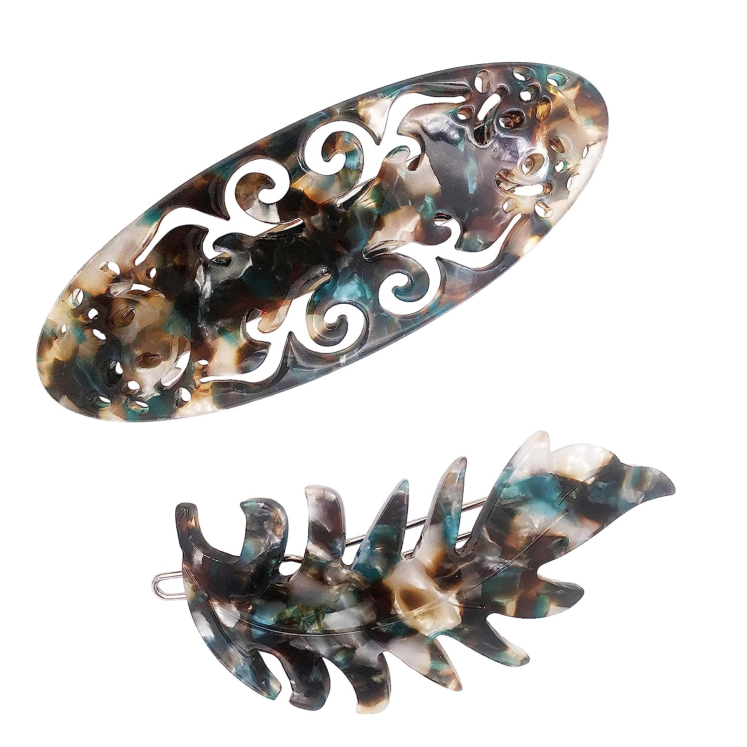 Medium Small Midnight Forest Leaf Barrettes Set Hair Accessories for Women