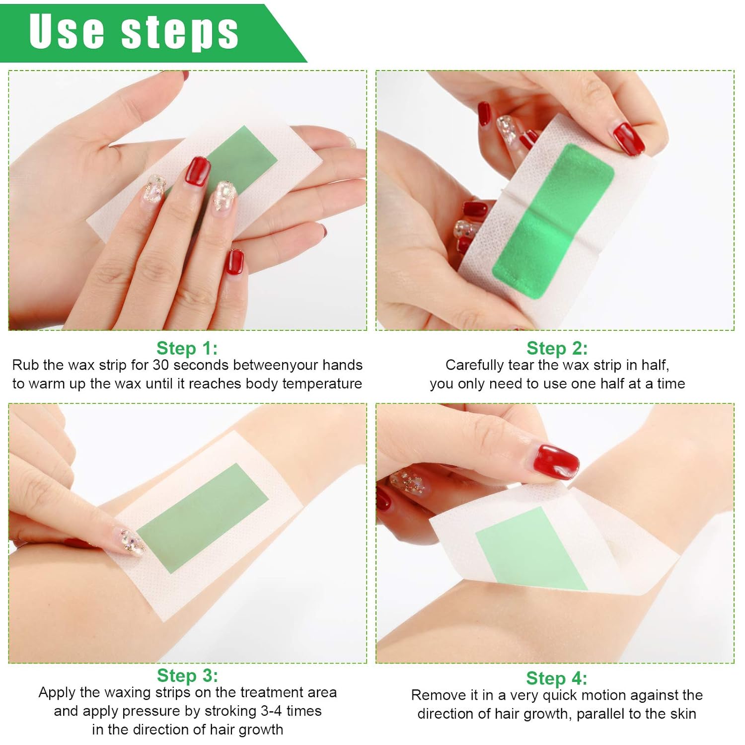 Features:Convenient and fast:When using, the wax strip does not need to be preheated, just paste it on the area of depilation, or rub it quickly with both hands or heat it with a hair dryer, wait for a few seconds, and then tear off the glue, without microwave oven or wax heater, which is very convenient.