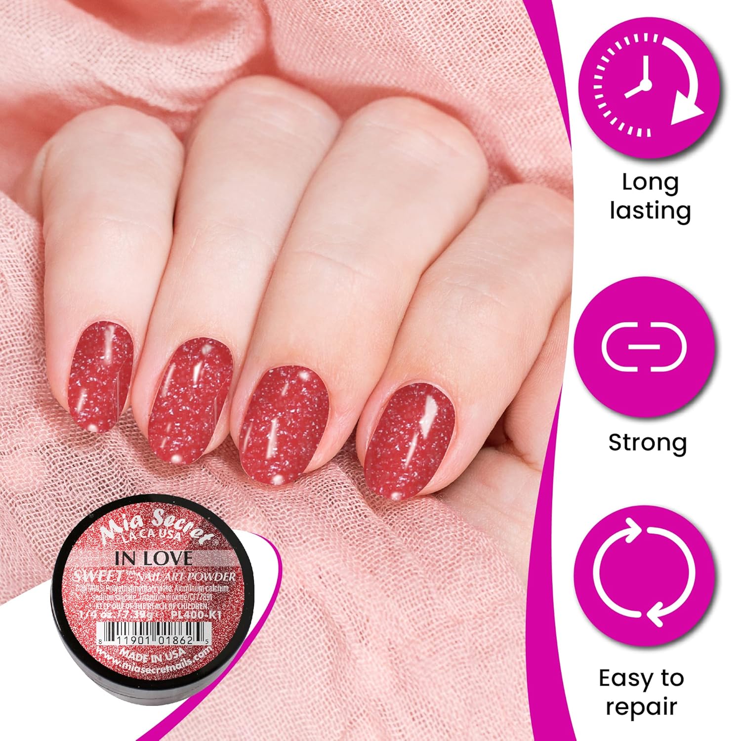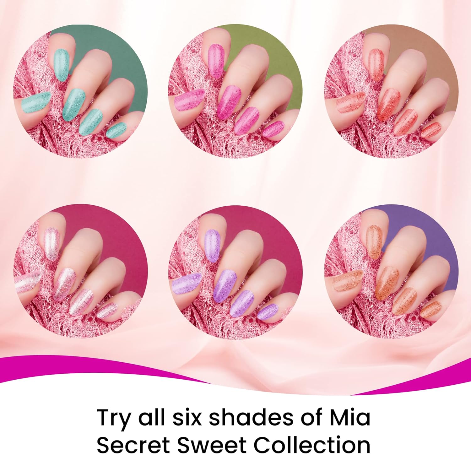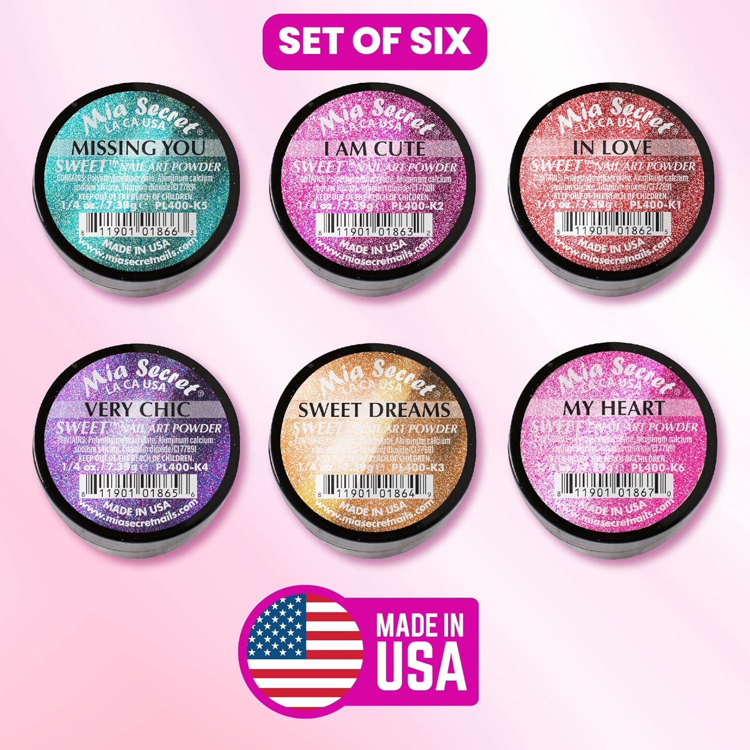 Sweet acrylic collection includes colors: My Heart, Very Chic, Missing You, Sweet Dreams, In Love, I am Cute.