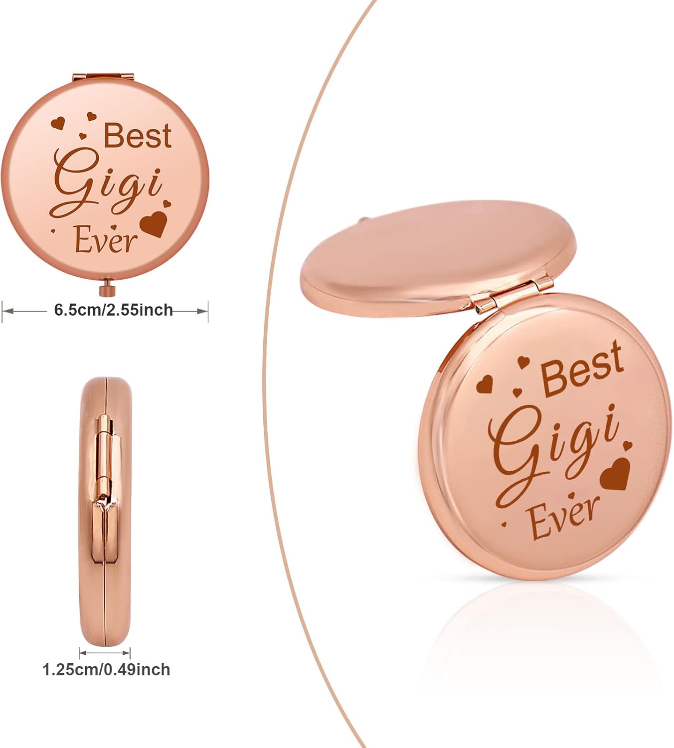 The gift of the best grandmother will definitely make your grandmother laugh with joy and happiness; remind her how much you love her Grandma gifts suitable for any scene: This exquisite compact makeup mirror is definitely an ideal gift for GIGI, when celebrating birthdays, Christmas, Christmas, retirement, Mother”s Day, Thanksgiving, becoming a Gigi for the first time, milestone birthdays, wedding anniversary, Valentine”s Day , Are your best choice Specifications: Color – Rose Gold Size – 65mm(2.