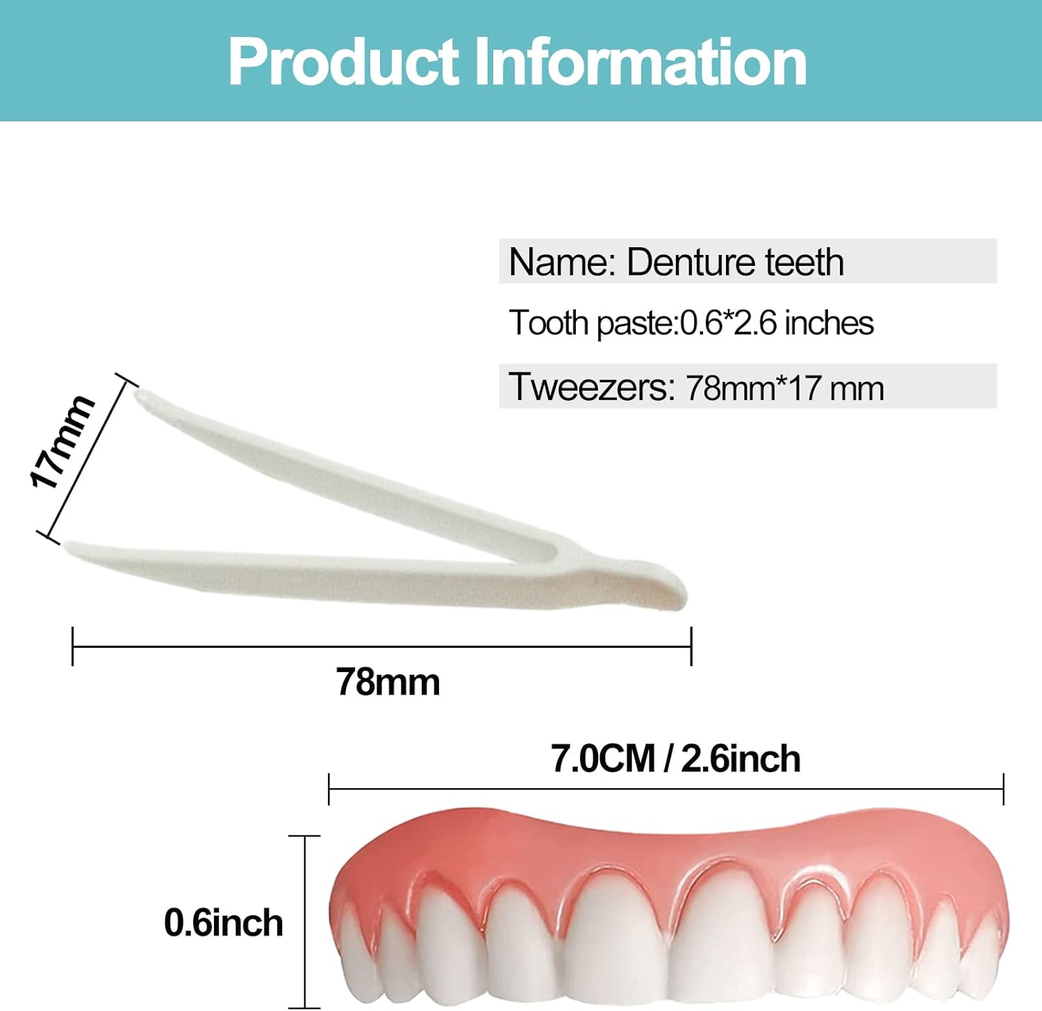 –Environmentally friendly materials, healthy and safe to use –Natural white tooth coloring, natural gum coloring, mild gloss finish for a realistic look –Thin and comfortable to wear, no foreign body sensation –Readjustable size and reusable after cleaning Easy to Use: Step1.