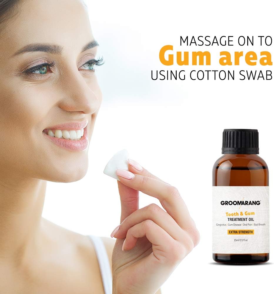 p>Groomarang extra strength tooth and gum treatment oil provides: ▪Immediate relief from oral pain and tooth ache ▪Treatment and prevention of bad breath ▪Treatment and prevention of gum disease ▪Stronger Teeth & Gums Significant improvements have typically been reported within 30 days of initial use by patients suffering from advanced cases of chronic halitosis, cavities, gingivitis, gum and periodontal disease, bleeding and receding gums, dental pockets, plaque, thinning enamel, loose, dull, sensitive and abscesses teeth.