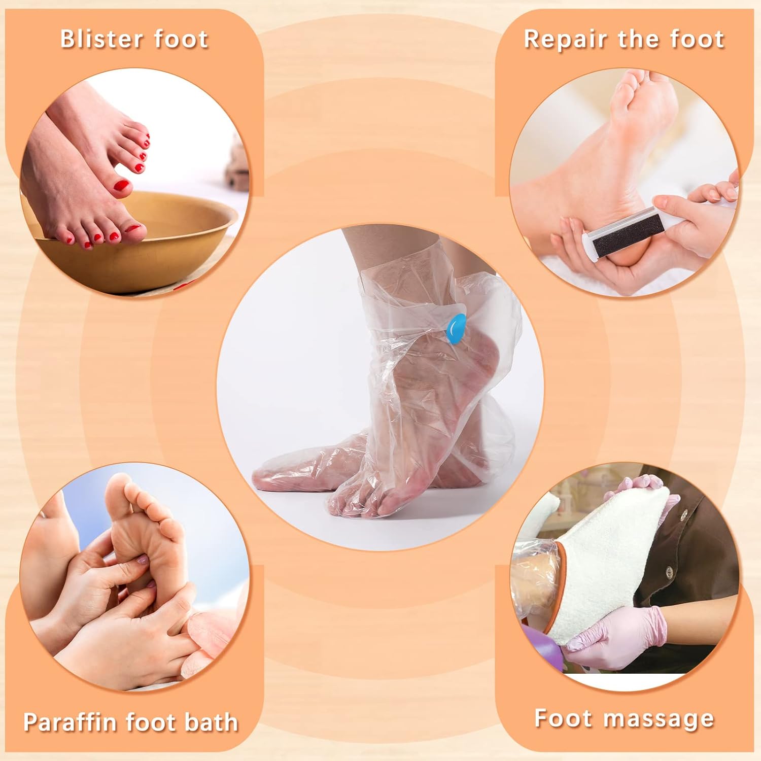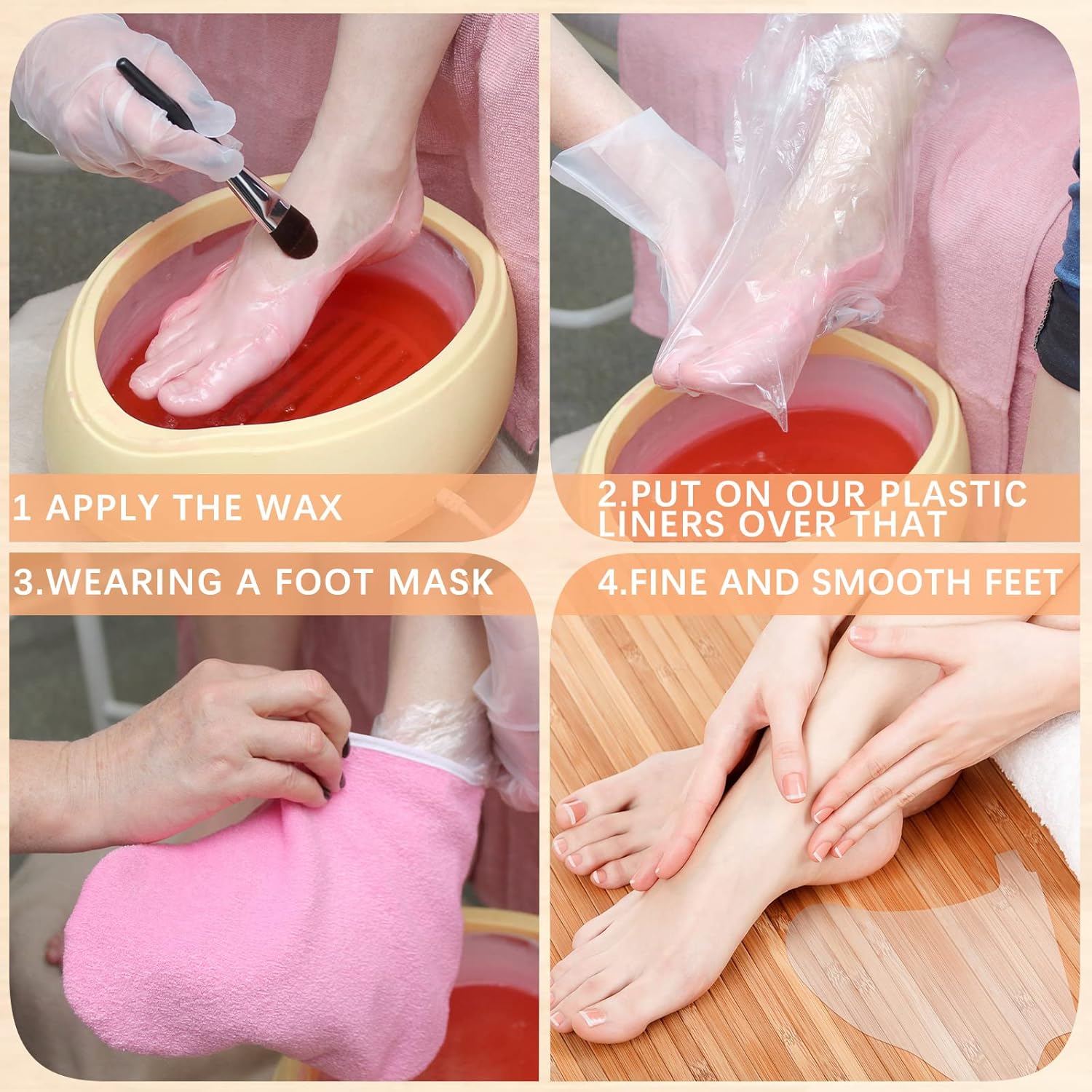 Features: Care feet: Simply soak your feet into the wax container, pull out a few seconds and repeat, then put them into foot bath socks, which can care your feet and make you feel relaxed.