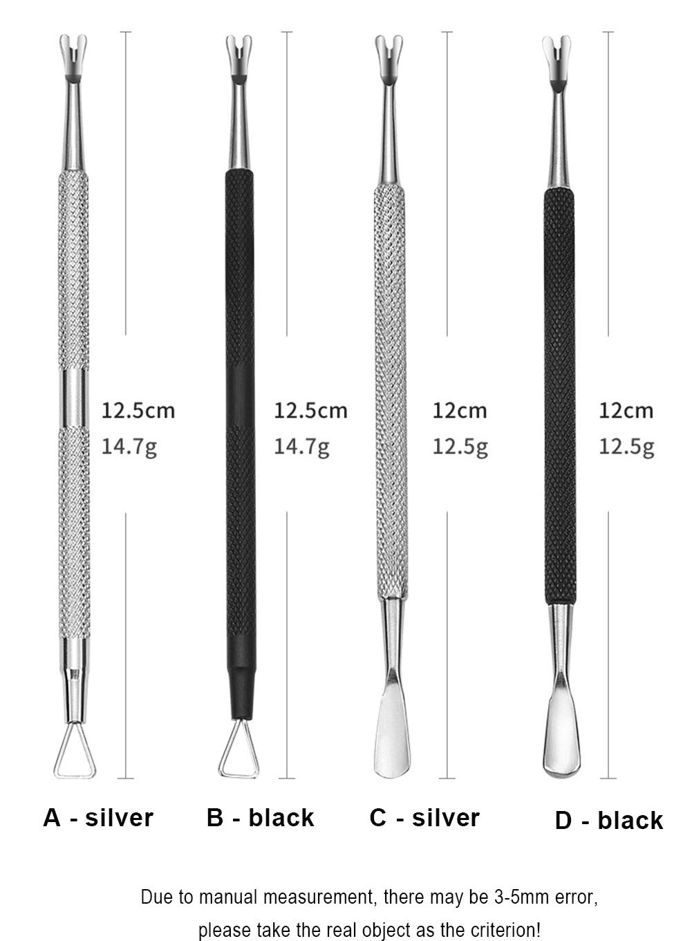 C,D Specifications: 4 dead leather push Packing includes: 4 pcs Unloading JiaGang push Features: –The package contains 4 nail care tools in different colors and styles, beautiful and practical.