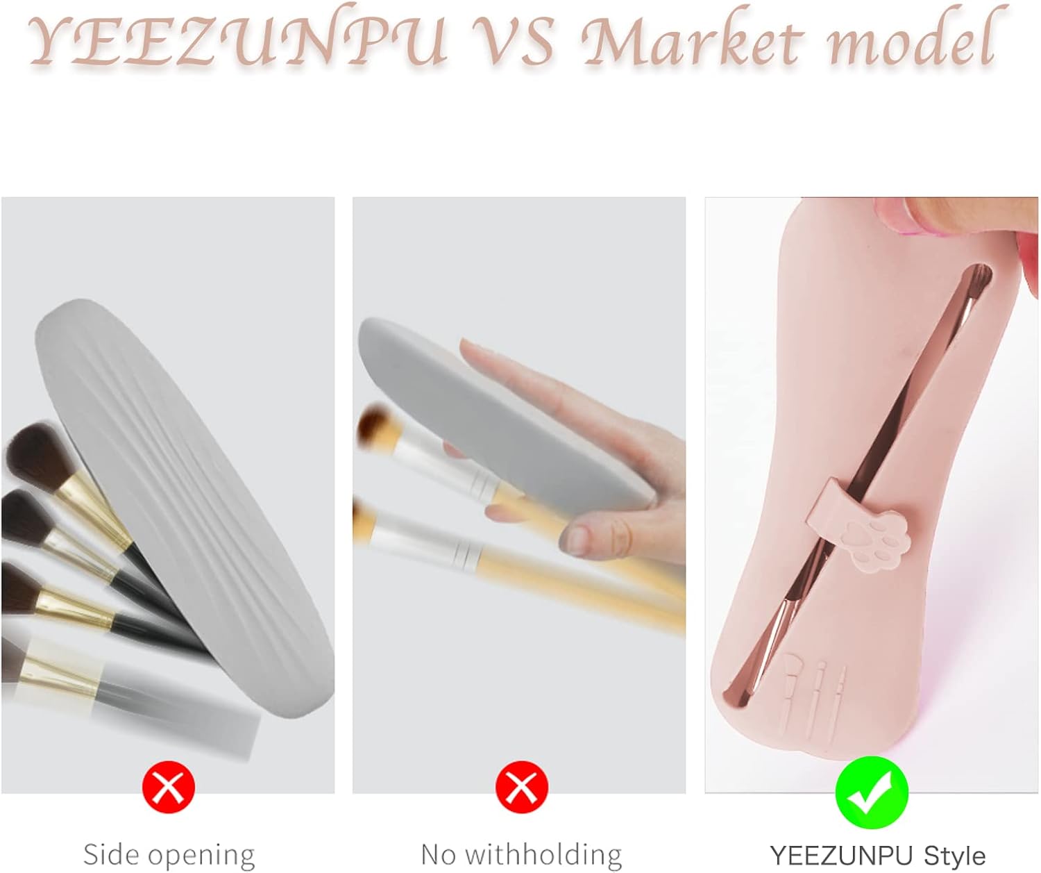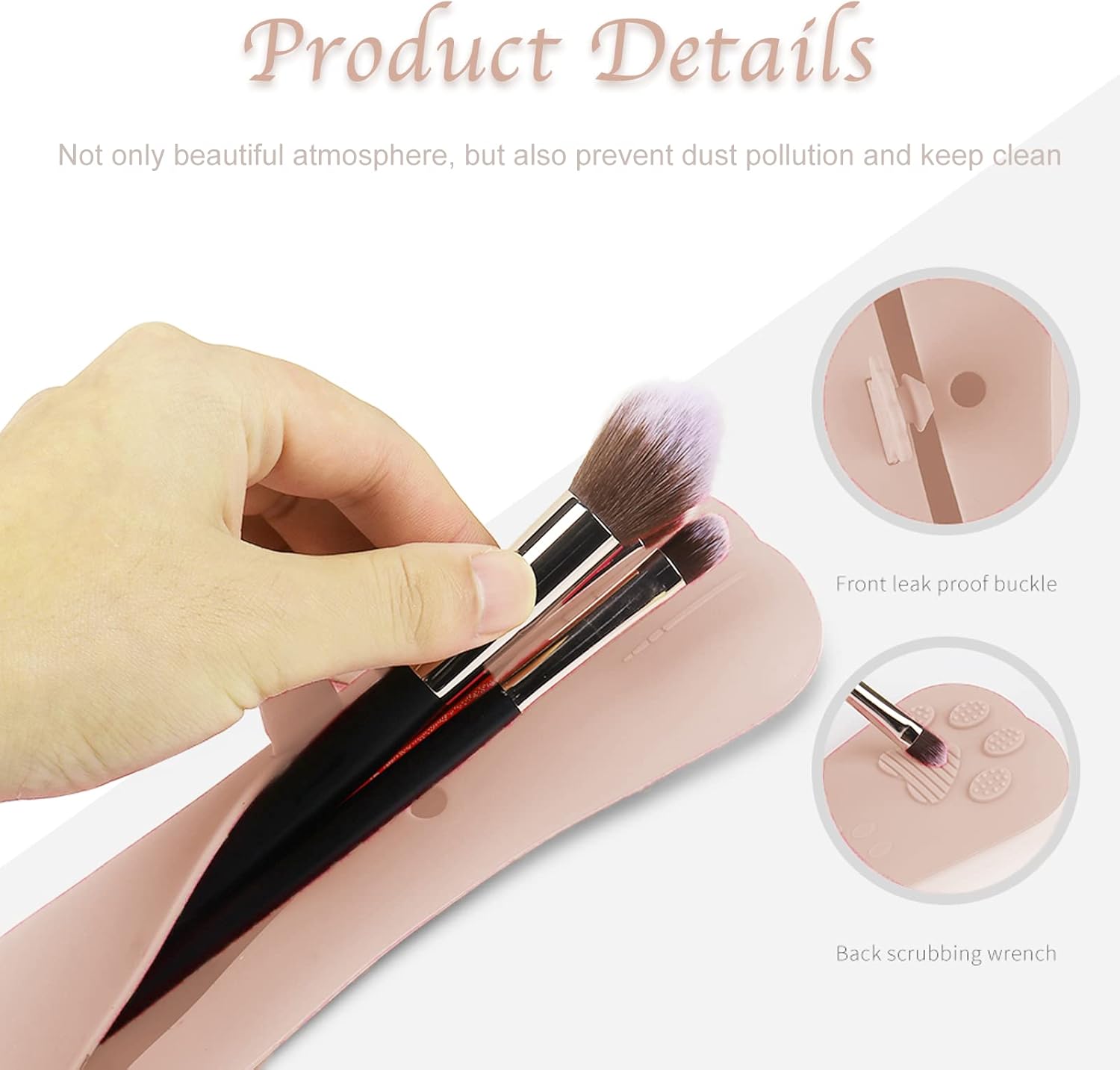 this silicon makeup brush holder is made with high-quality and harmless silicon that is dust-proof, breathable, and easy on the skin and the environmentSpecificiations:Name : Cosmetic Pen Storage BagColor: KhakiMaterial: Siliconesize:Silicone case: 20*5.