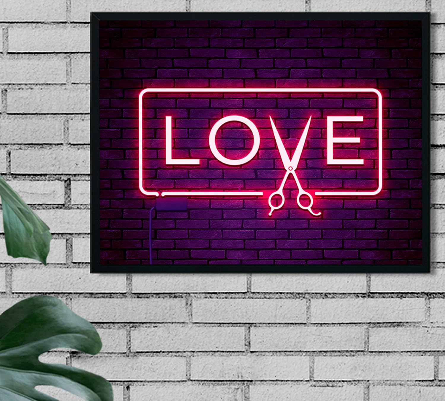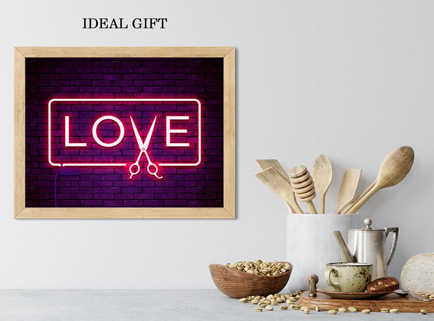I have included some previews here to give you ideas of how the print will look in different frames Love Scissors Wall Art 14″x11″ Unframed Art Print Modern Neon Brick Style for Hairdressing Salon, Hair Salon, Beauty Parlor décor.
