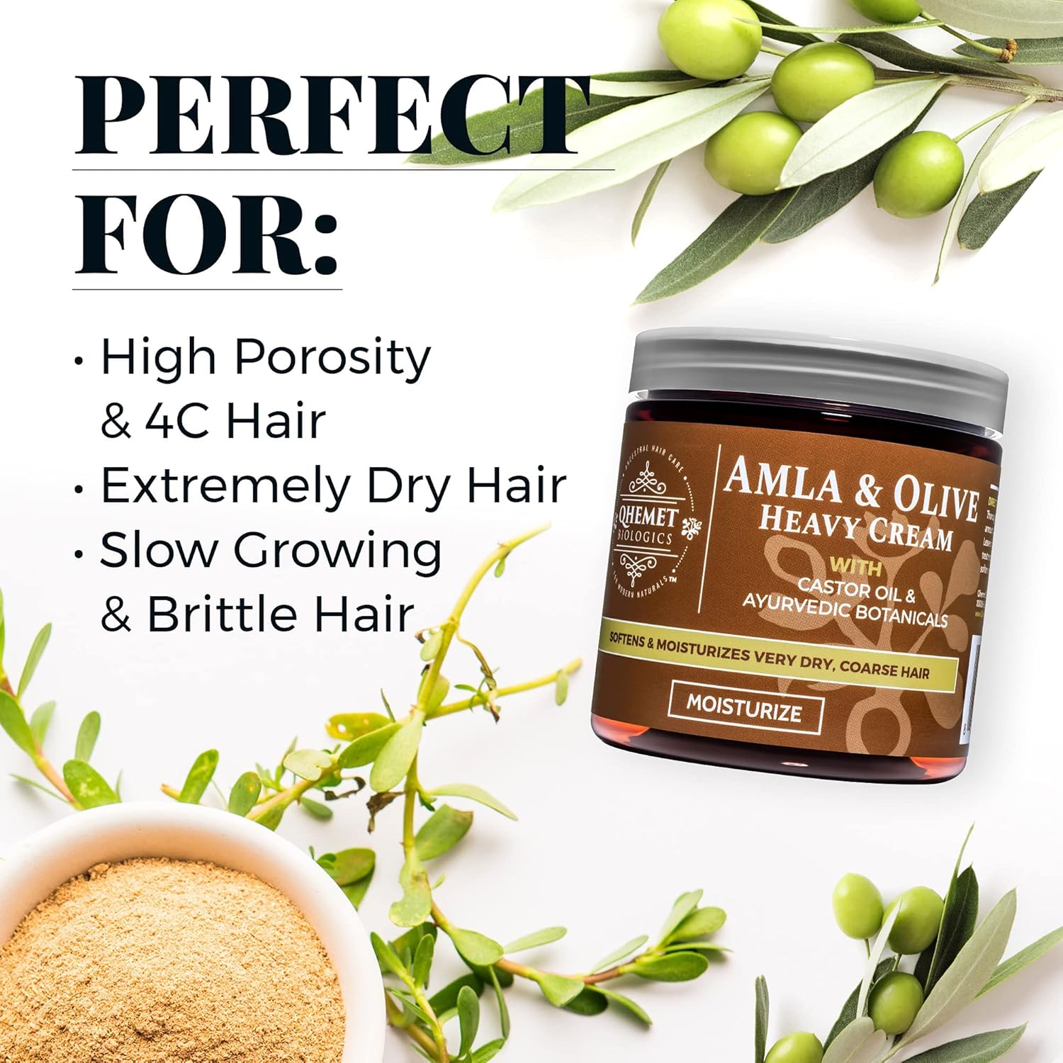 Amla & Olive Heavy Cream Turn your beautiful 4C tresses into a glistening crown of dewy soft moisture today! This dense, rich formula softens and hydrates the thickest, driest, coarsest hair, keeping it super soft and supple for days on end! Formulated with Castor Oil, Olive Oil and Ayurvedic botanicals for intensive moisture and healthy hair growth, this exceptional leave-in is beloved by 4C naturals worldwide and has become THE quintessential leave-in for dry, afro/coily hair! Recommended as one of the best moisturizers for natural hair by Essence, Allure and Harper”s Bazaar.
