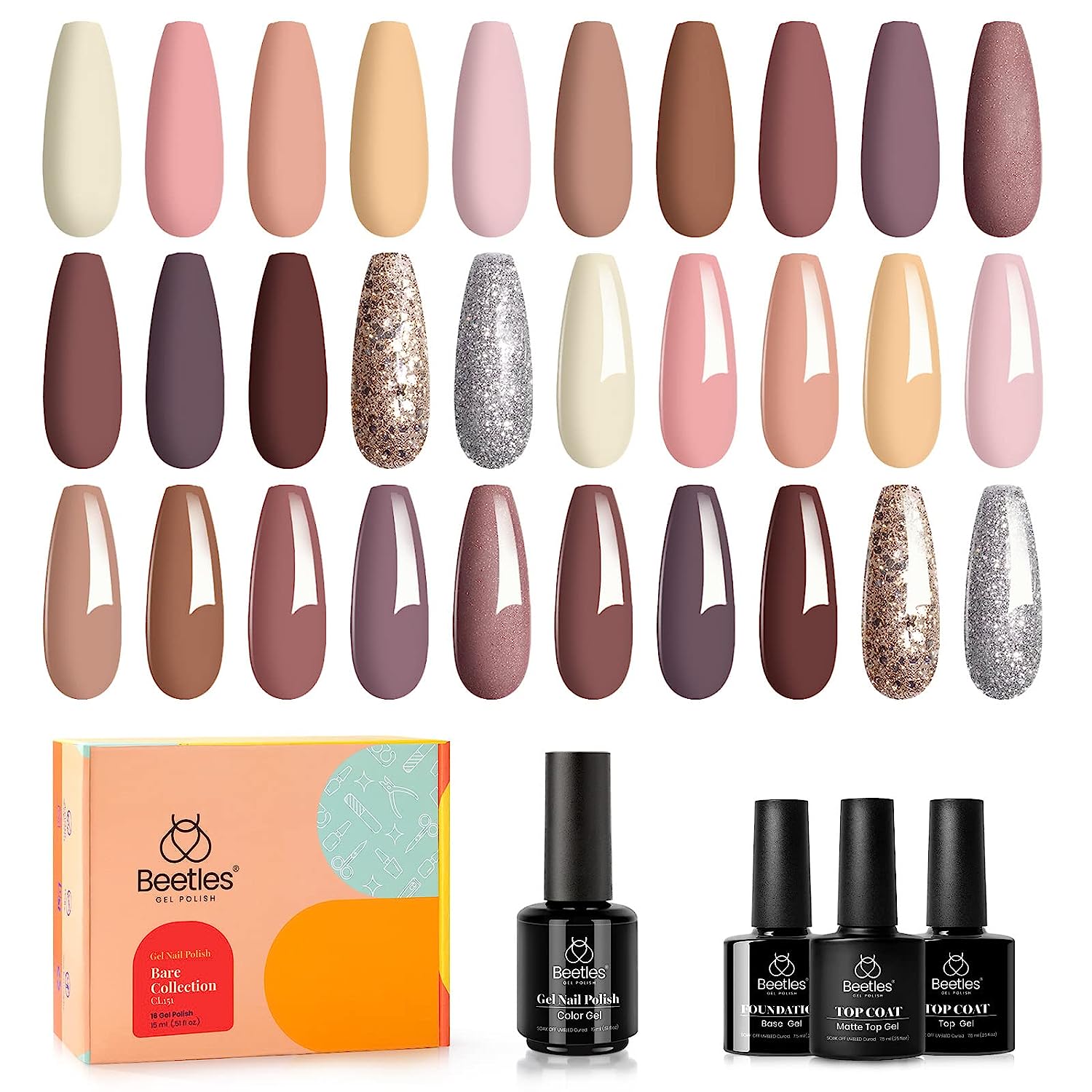 Burgandy Red and Red Glitter Gel Polish Set 6 Colors Long Lasting, Soak Off UV LED Gel 8ml Bottle