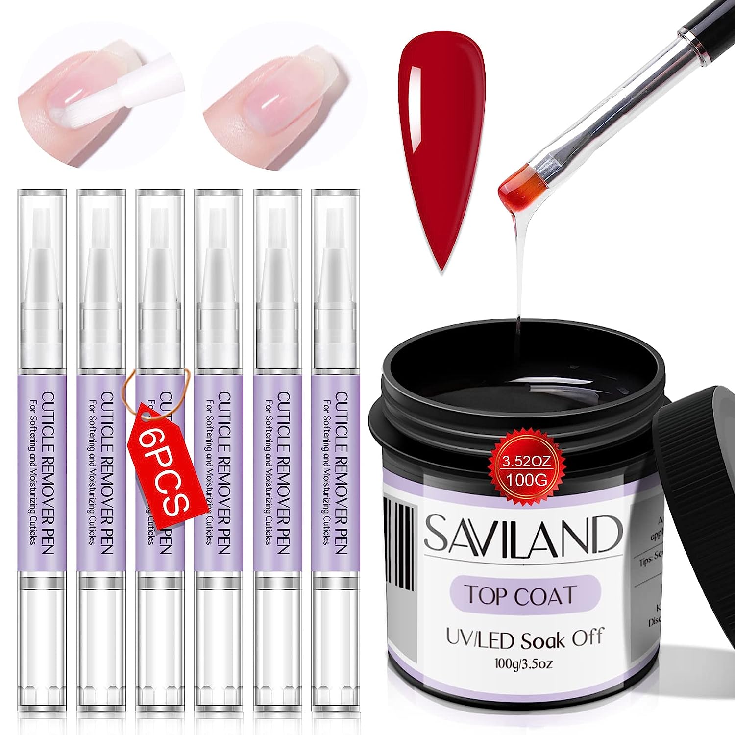 3.5OZ Gel Top Coat and 6PCS Cuticle Remover Pens – Professionals Home DIY Nail Salon Manicure