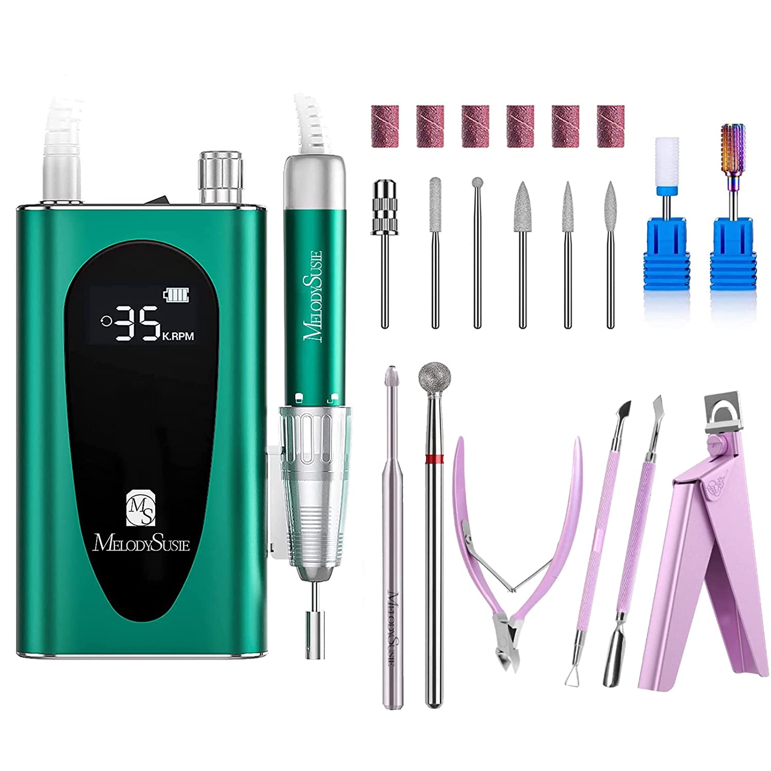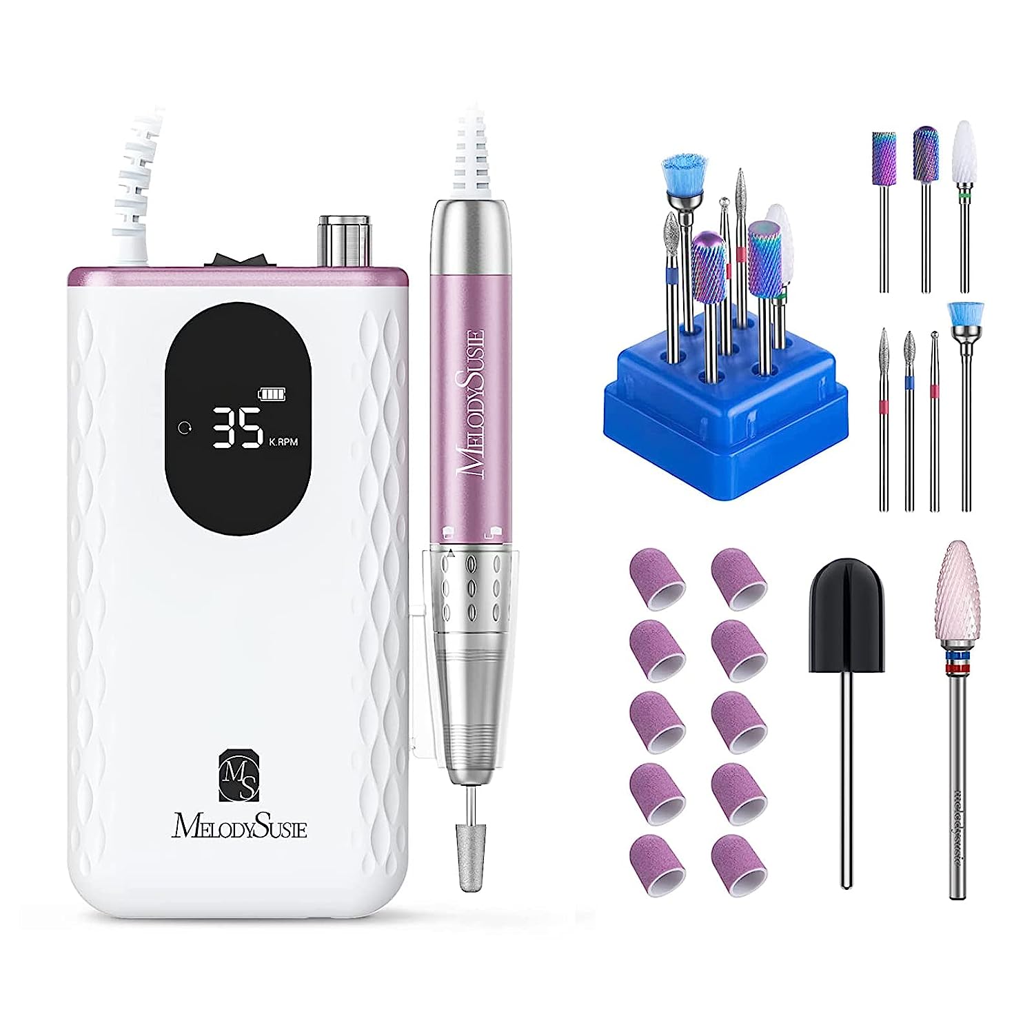 35000RPM Nail Drill Professional with Rose Pink Nail Drill Bits Organizer