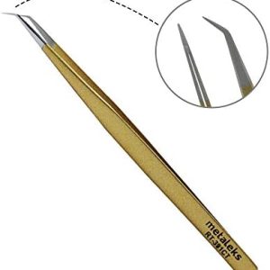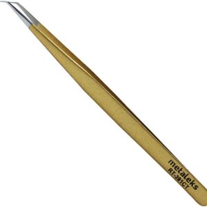 Tweezers For Eyelash Extension – Long 45° Angular Tip Tweezers – Hand Crafted Surgical Stainless Steel Precision Tweezers (Metallic Gold Powder Coated)