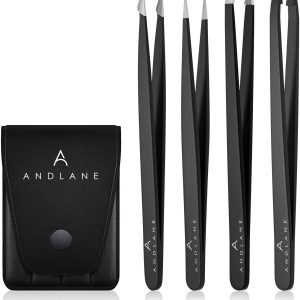 Tweezers Set – Andlane 4 Pack Stainless Steel Precision Tweezers For Eyebrows, Facial Hair, Ingrown Hair, Splinters And More (Slant, Pointed, Flat And Point Slant With Case)