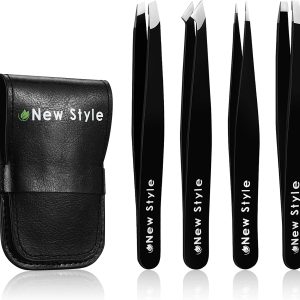 Tweezers For Women & Men Pack Of 4 Stainless Steel Tweezers Set, Precision Tweezers For Eyebrows Splinter Ingrown Hair Removal Tweezers Kit For Women With Leather Case – Matte Black