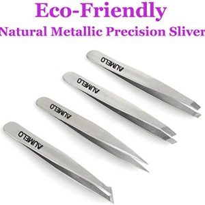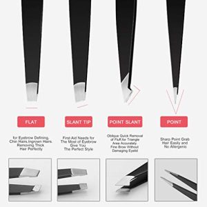 Tweezers Set 4-piece-Stainless Steel Slant Tip + Sharp Pointed Eyebrow Tweezer Set-Precision Facial Hair Removal ,Eyebrow Hair,Splinter,Blackhead,Ingrown Hair/Tick Remover-Ends Meet Perfect : Beauty & Personal Care