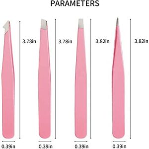 Tweezers Set 4-Piece, Professional Stainless Steel Tweezers, Precision Tweezers For Eyebrows , Facial Hair, Ingrown Hair, Splinter, Blackhead Remover (Pink)
