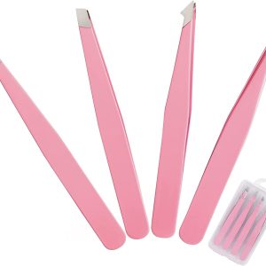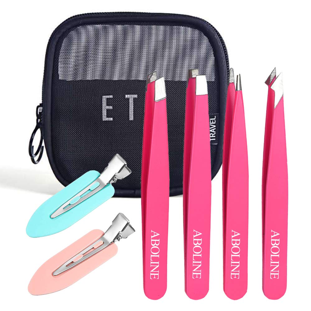 Tweezers Set,ABOLINE 4 Pieces Professional Stainless Steel Tweezers, Best Precision Tweezers for Eyebrows, Ingrown&Facial Hair,Blackhead and Lash Extension with Travel Bag No Bend Hair Clips(Hot Pink) : Beauty & Personal Care