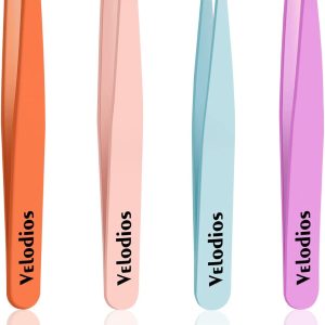 Velodios Tweezers for Women and men, Professional Precision Tweezers for Eyebrows, Pointed and Slant Tweezers for Facial Hair, Splinter and Ingrown Hair Removal, Stainless Steel Tweezers Set – 4Pack : Beauty & Personal Care