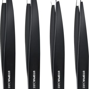 Utopia Care – Professional Stainless Steel Tweezers Set (4-Piece) – Precision Tweezers For Ingrown Hair, Facial Hair, Splinter, Blackhead And Tick Remover (Black)