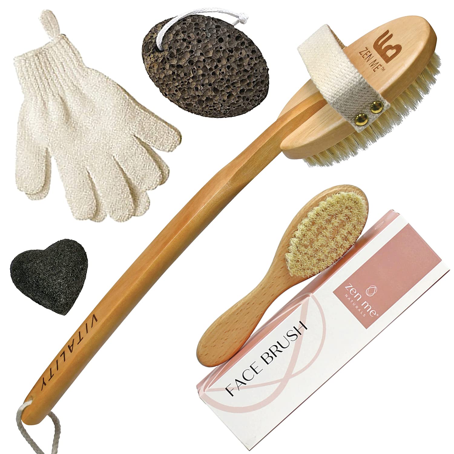 Zen Me Premium Dry Brushing Body Brush Set and Dry Brush for Face Bundle for Natural Exfoliation : Beauty & Personal Care