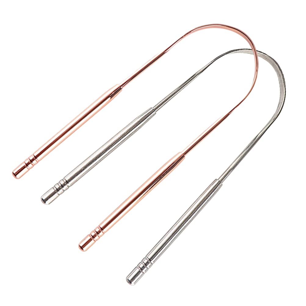 Tongue Cleaner Tongue Scraper Dental Tongue Cleaning Brush Oral Care 2pcs (silver + Rose Golden)