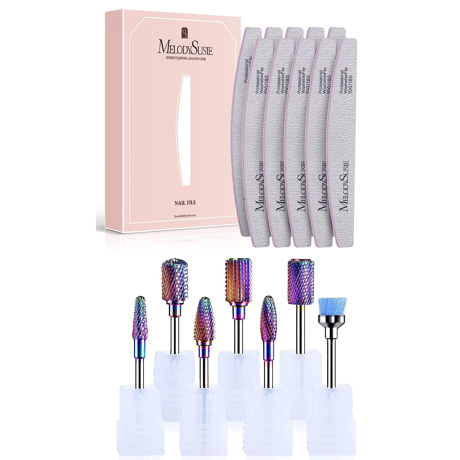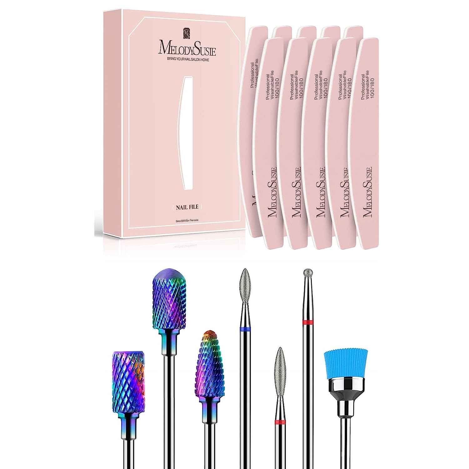 Nail Drill Bits Set with 10 PCS 100/180 Grit Professional Nail File