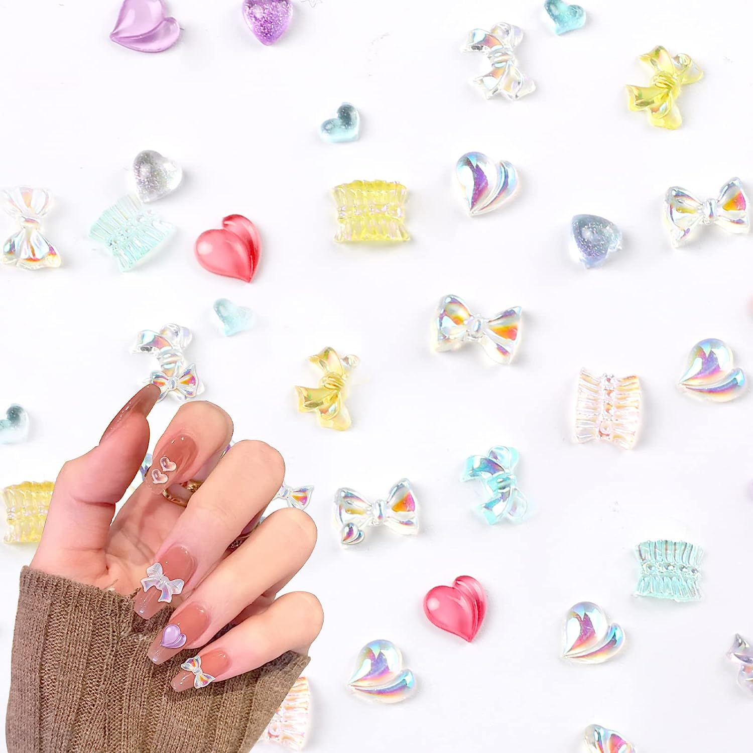 Pcs 3D Cute Nail Charms Mix Styles Nail Art Decoration Butterfly Bow Charms Peach Bear Aurora Skirt for Acrylic Nails Resin Nail Rhinestone Glitter Nail Art Accessories DIY Nail Decorations