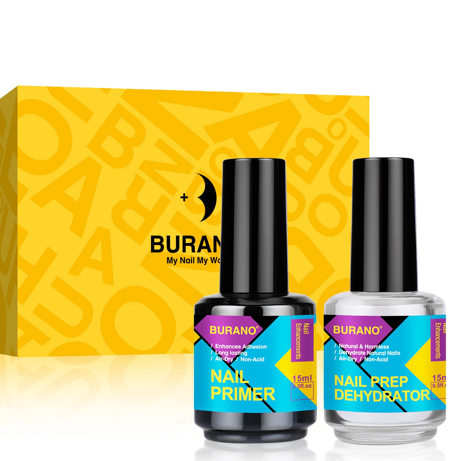 Natural Nail Gel Prep Dehydrator and Primer for Acrylic Nails and Gel Polish, Long Lasting Acid Free Acrylic Nail Primer No Burns Bonding Primer (0.5 oz 2 Bottles)