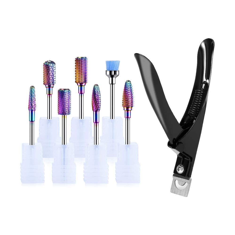 Nail Drill Bits Set with Acrylic Nail Clippers, 7pcs Tungsten Carbide Nail Bits for Nail Drill E-file, 3/32 inch Bits Manicure Pedicure Remover Tools for Acrylic Gel Nails