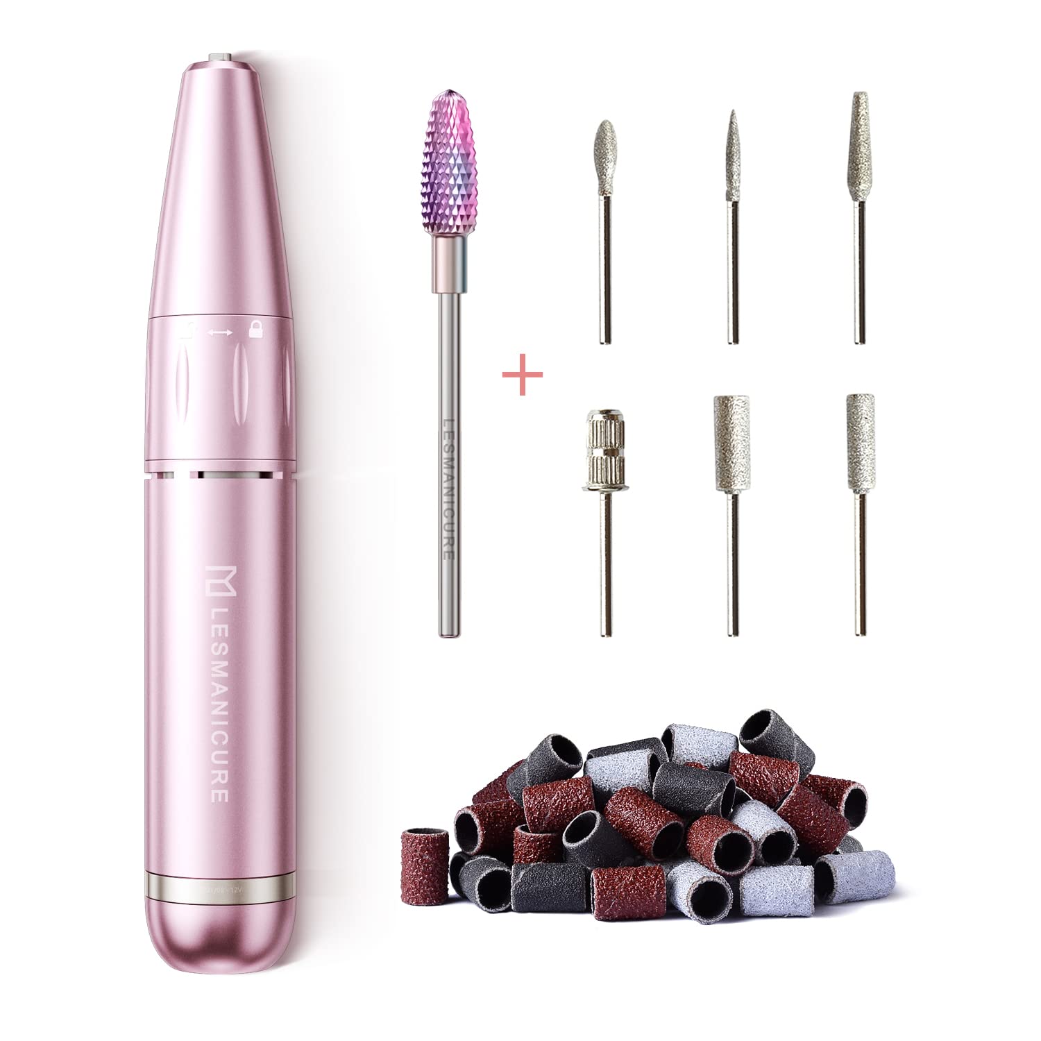 Nail Drill, LesManicure 35000RPM Professional Steady Efile with Tungsten Bit for Acrylic Gel Nails, Portable Nail File for Home Salon Use, Powder Pink