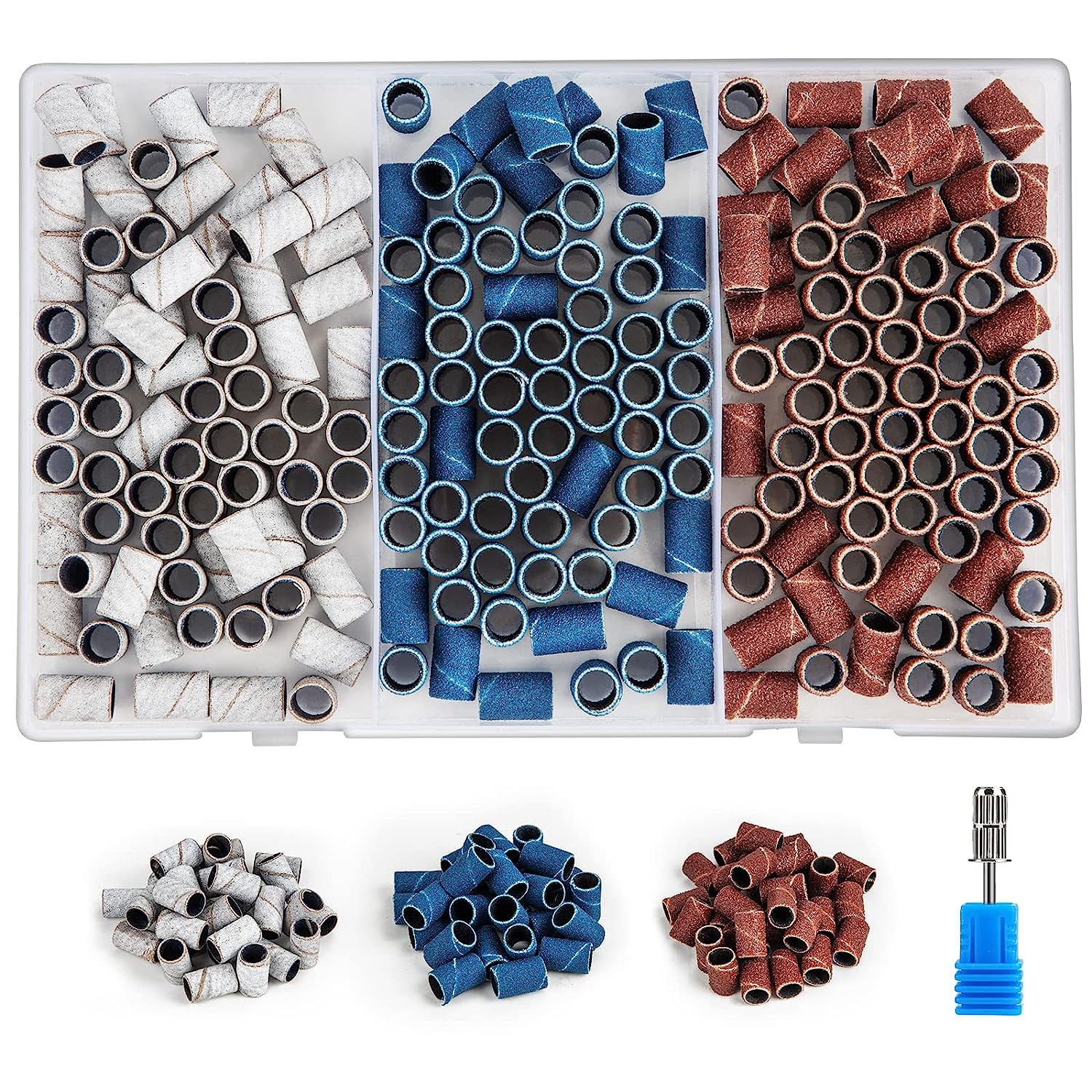 Nail Drill Bits Sanding Bands for Nail Drill, 80#150#240 Grit 210 Pcs Sanding Bands Set for Acrylic Gel Nails Manicures Pedicures Tools