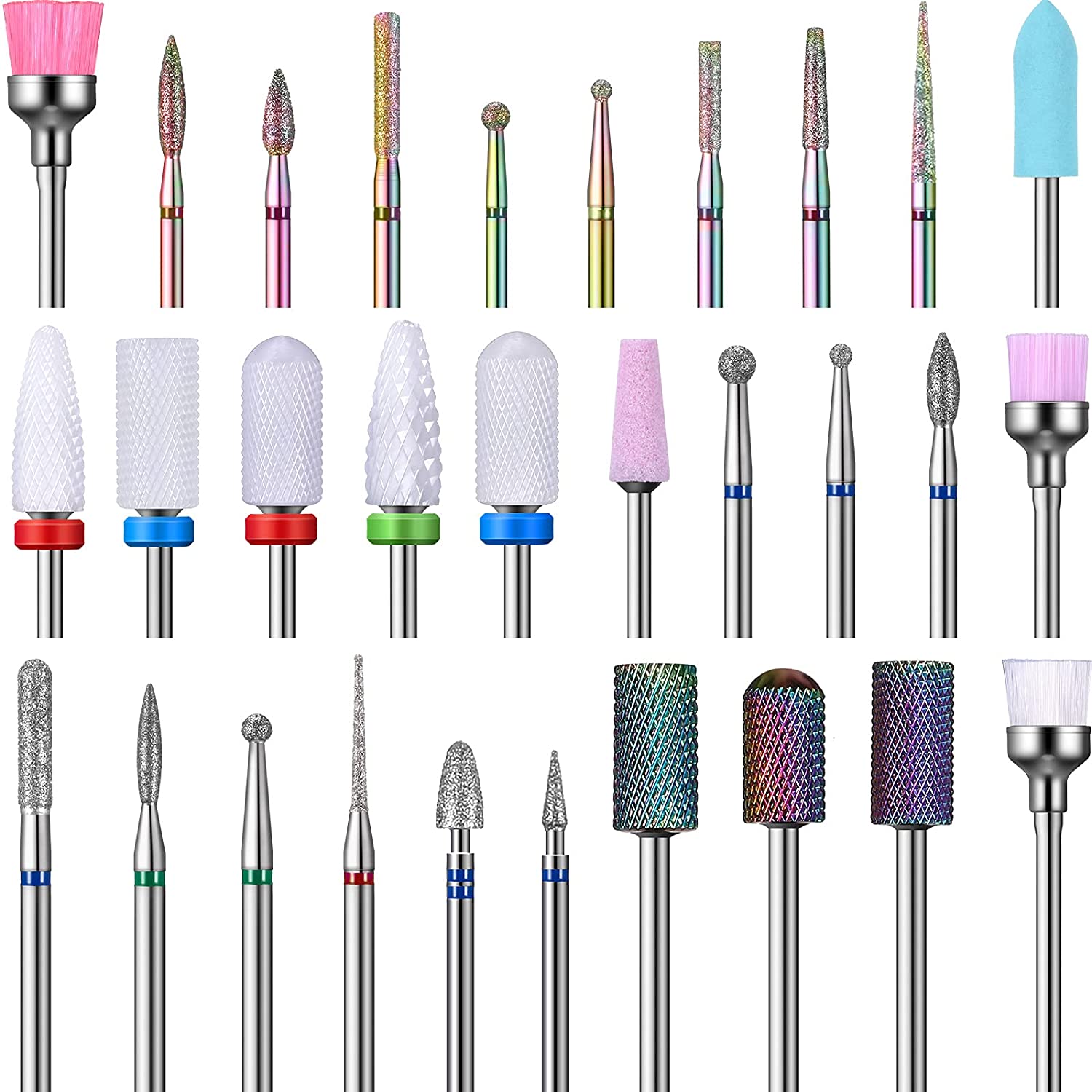 Pieces Nail Drill Bits Set 3/32 Inch Ceramic Efile Nail Drill Bits Diamond Cuticle Electric Nail File Carbide Cuticle Remover Bits for Home Salon Acrylic Gel Nail Manicure Pedicure Tools