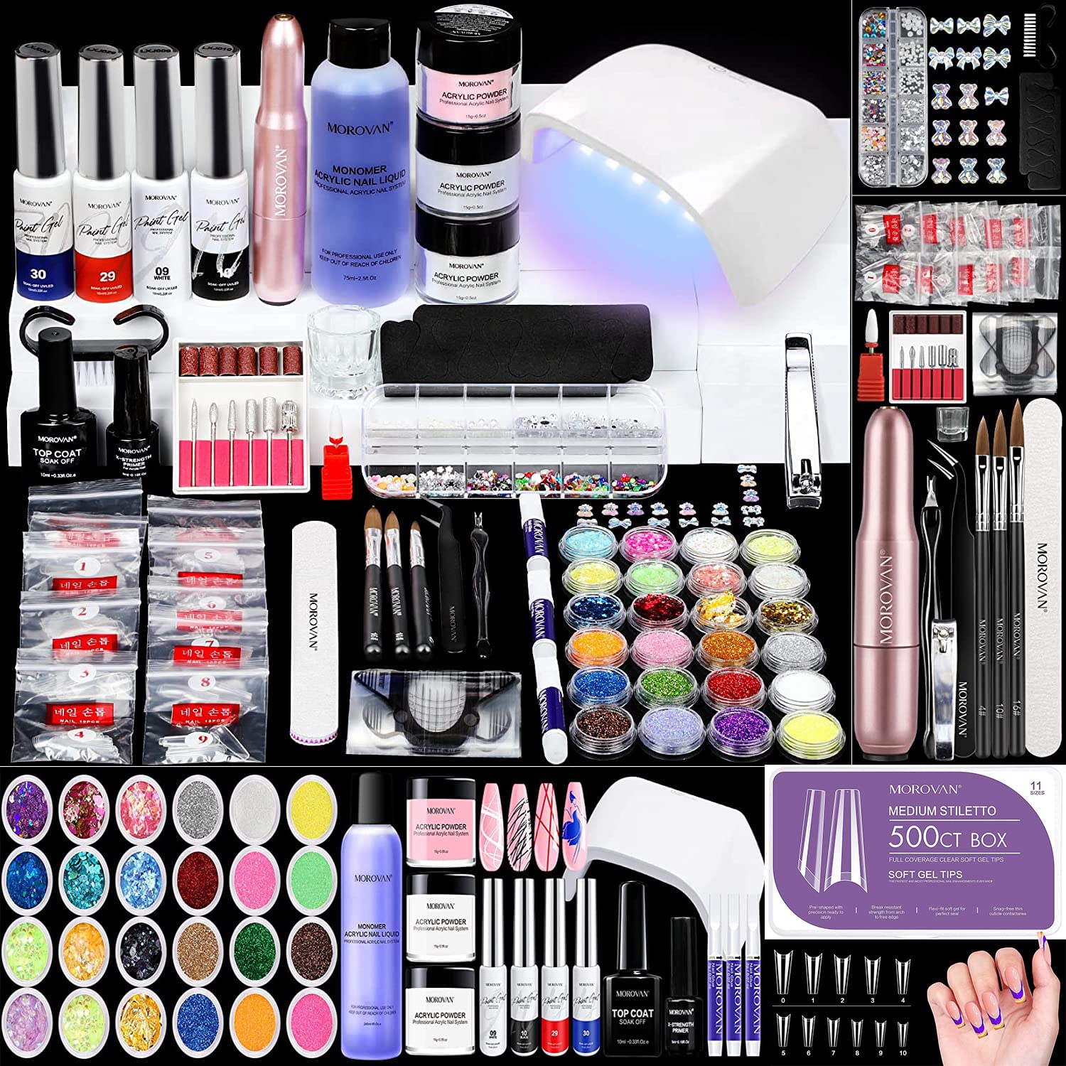 300PCS Full Matte Medium Coffin Nail Tips with Clear Acrylic Nail Powder for Women