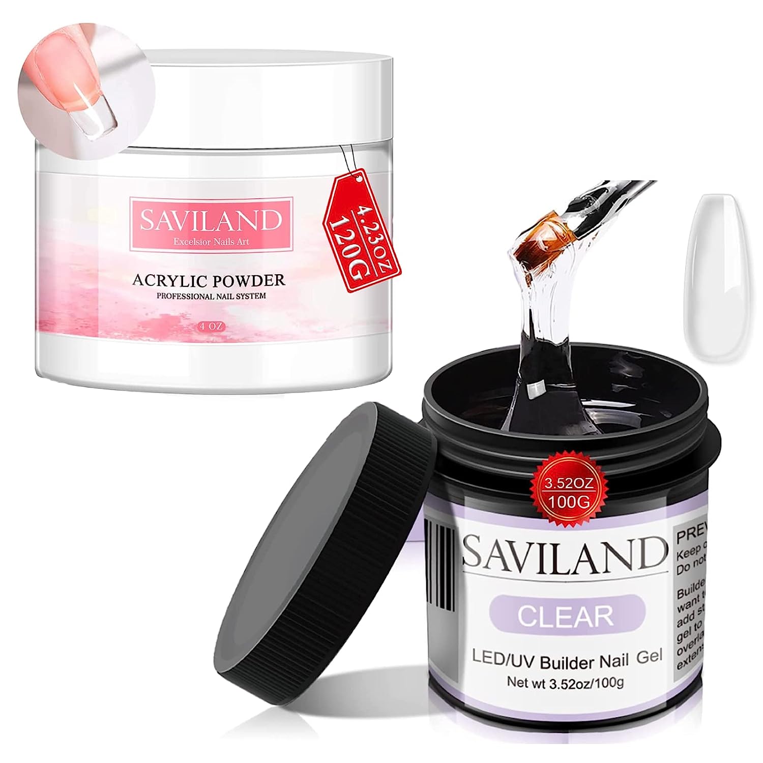3.5oz Clear Builder Nail Gel and 4.23oz Clear Acrylic Powder for Nail Extension at Salon & Home