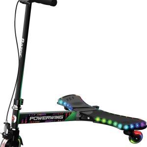 PowerWing Lightshow Caster Scooter for Kids Ages 6+ – Multi-Color LED Lights with 5 Animated Light Modes, Inclined Casters for Drifting and Spinning, for Riders up to 143 lbs