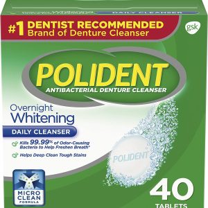 Overnight Whitening, Antibacterial Denture Cleanser, Triple Mint Freshness 40 ea (Pack of 5)