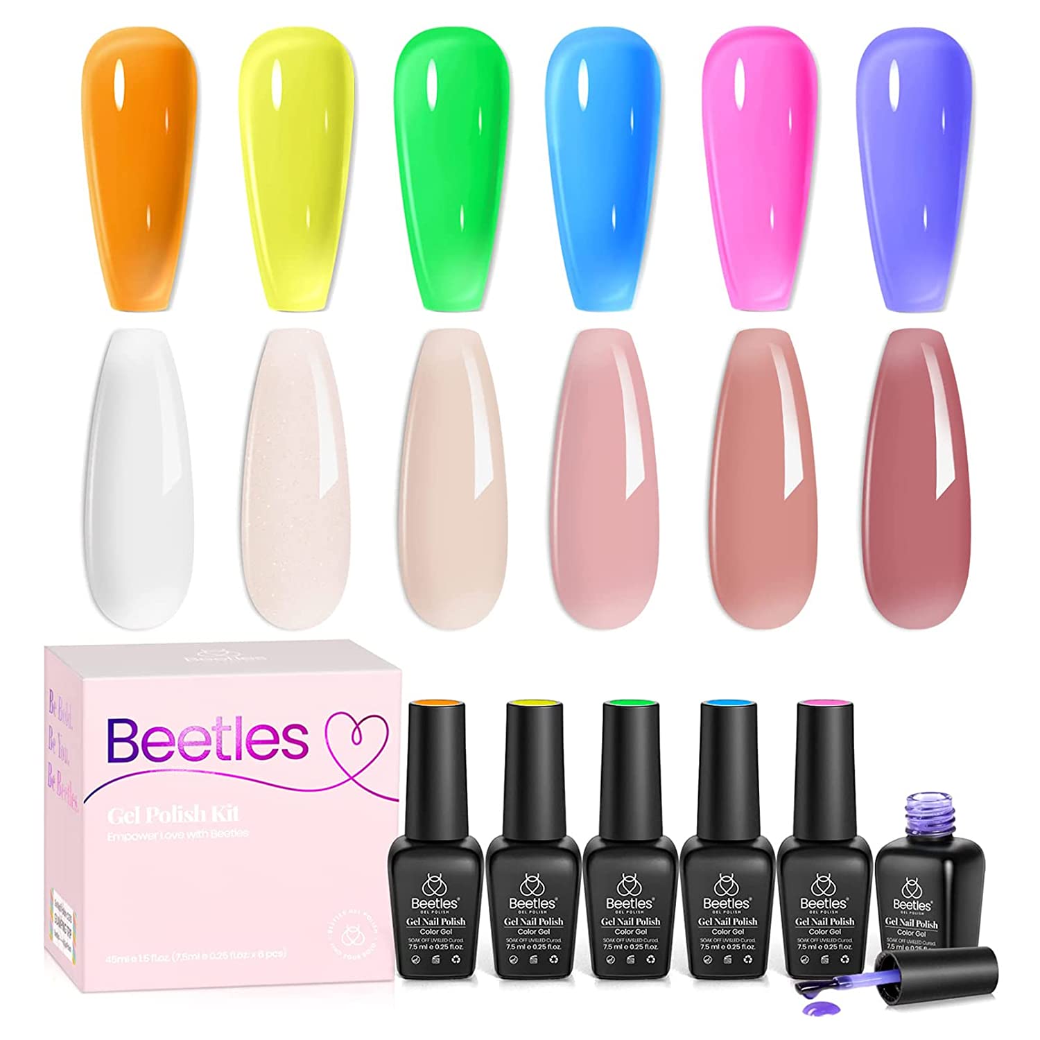 Gel Polish 6 Colors Jelly Gel Nail Polish Set Neon Nail Gel Kit with Jelly Gel Nail Polish Set 6 Colors Neutral Sheer Milky White Nude Pink Gel Polish Kit Art DIY Manicure Gifts for Girls Wome