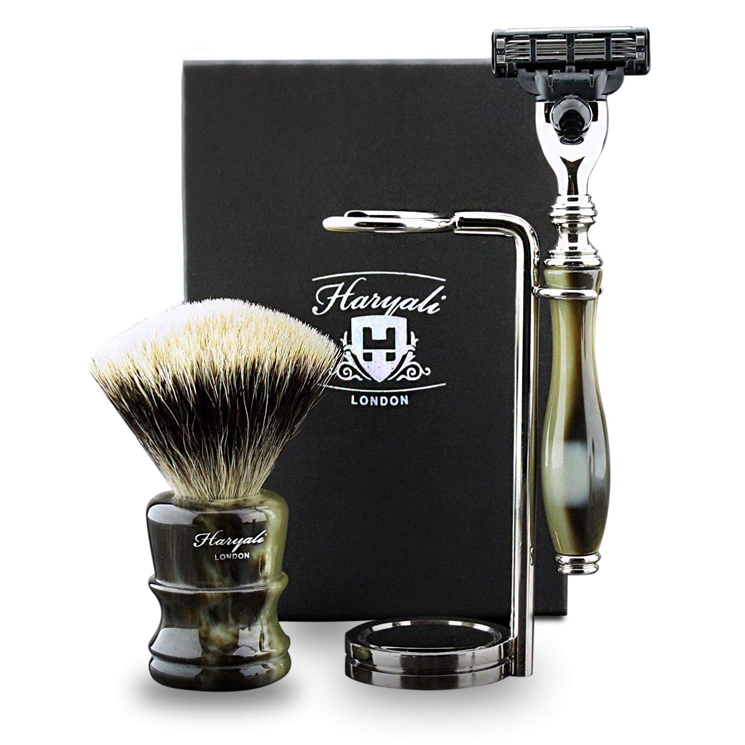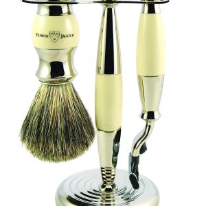 Shaving Gift Set – Imitation Ivory Pure Badger Shaving Brush, Gillette Mach 3 Razor and Stand