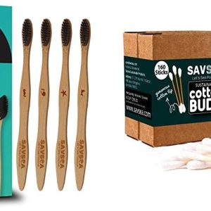 Bamboo Cotton ear Buds 320 count (80 stick x 4) & Bamboo Charcoal soft bristles Toothbrush (2 Count)