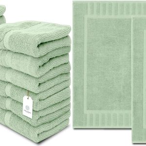 Luxury Washcloths | 12 Pack Luxury Bath Mat | 2 Pack Bundle (Green)